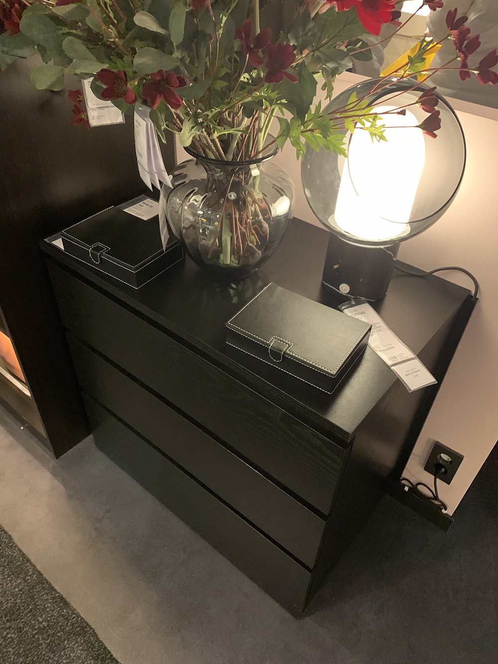 말름 MALM https://www.ikea.com/kr/ko/catalog/products/30354622 서랍장은 이케아 광명점 방문했던 작년에 구매 좀 고민했었고 부모님께도 보여드렸었는데, 어머니께서 결국 고르셨던 건 트뤼실 TRYSIL 다크 브라운이었죠. https://www.ikea.com/kr/ko/catalog/products/30355749/ 저는 서랍장은 잘 안쓰다 보니 패스.