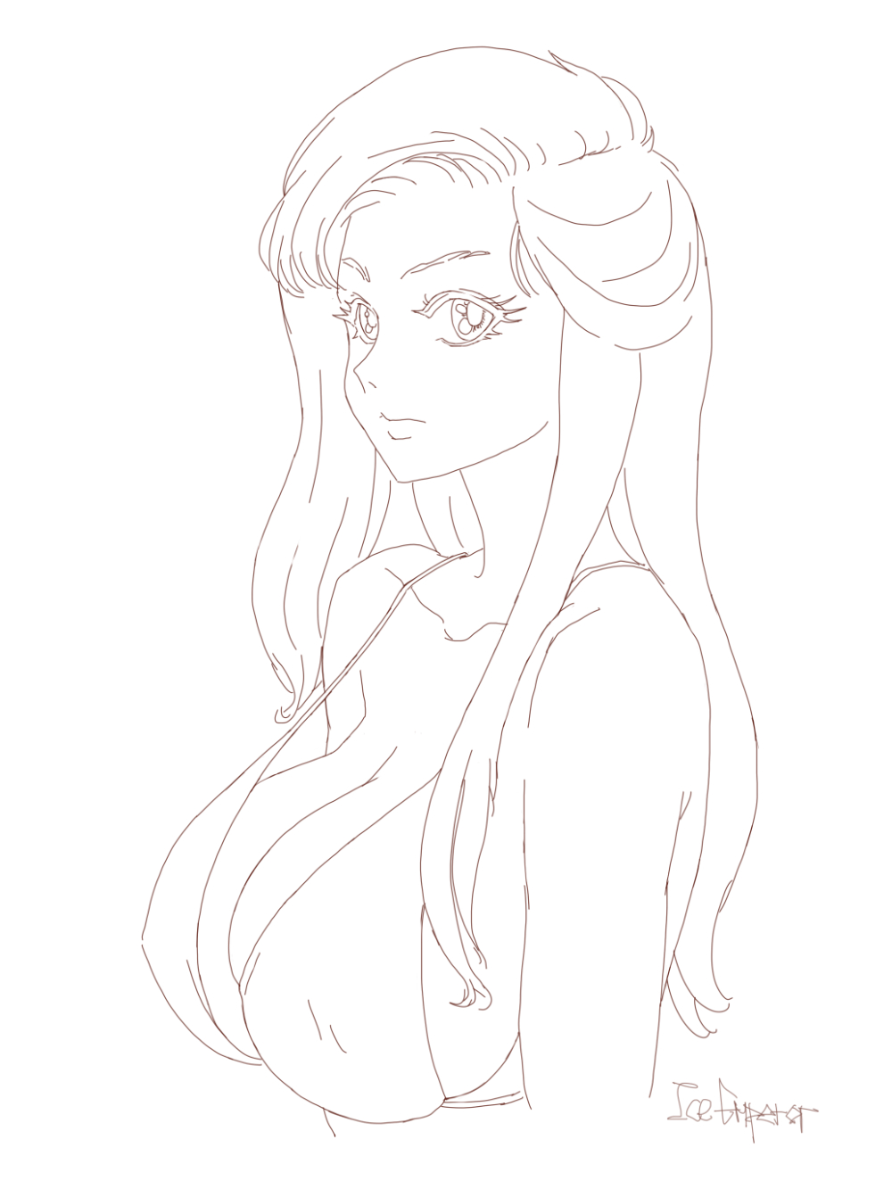 올해 3-5월 사이 그렸던 그림 중에, 외곽선을 깔끔하게 따 놓은, 상반신 중심의 스케치가 하나 있었습니다. 이 스케치는 먼저 시도한 스케치의 문제점을 대부분 회피할 수 있는 이미지이죠.